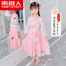 南极人童装5-12岁女孩夏天穿的公主裙演出服女童汉服儿童古装襦裙小女孩中国风夏装轻纱连衣裙子7 汉服浅绿色+鞋子【送挎包+饰品】 120
