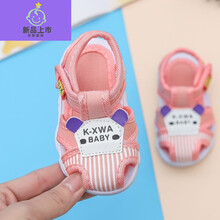 迪士尼同款 婴儿学步凉鞋软底男宝宝包头婴幼儿网鞋叫叫女童0-1-2岁布鞋家居6 2112BABY粉 16码内长11.5cm