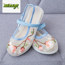 &初夏焕新专柜正品牌汉服鞋子儿童古代绣花鞋女童古风镂空鞋古装宝宝老北京网鞋舞蹈鞋 W905蓝色 31码/鞋内长19