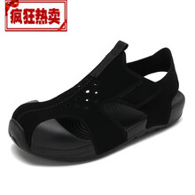 ゐ℘官方同款品质大牌童鞋2-14岁9小孩儿童凉鞋飞机鞋包头沙滩小童鞋男女童时尚皮面洞洞鞋软底宝宝鞋蓝 黑色L7 28