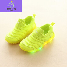 迪士尼同款 毛毛虫女童鞋发光春夏秋学步鞋男小童1-3岁宝宝亮灯鞋运动鞋带闪灯5 绿色 28码内长约17厘米