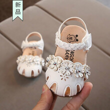 ℘迪士尼同款轻奢婴儿鞋童鞋一岁半女宝宝夏季鞋子0-1-3岁2凉鞋女童花朵软底学步鞋036 905米白色 905香草凉鞋 23码内长15厘米