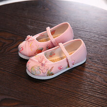 【品质童鞋】迪士尼小女孩传统风汉服女童绣花鞋老北京儿童手工布鞋民族风古风学生鞋舞蹈刺绣童鞋 粉色A3091 29码/内长17.7cm
