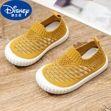 迪士尼品牌2021夏季新品儿童镂空单网鞋小童宝宝网眼鞋男童透气网面运动鞋女童鞋软底 姜黄色鱼纹镂空 28