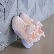 迪士尼同款高端轻奢女童运动鞋2021年夏季新款女孩透气小白鞋儿童网面老爹鞋女童鞋子 粉色 33码内长20cm