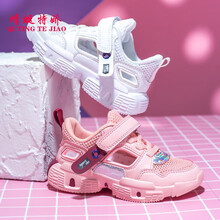 蜻蜓特娇童鞋女童鞋2021夏季新款儿童透气镂空网面休闲鞋中大童运动鞋子 粉色 34码内长22cm