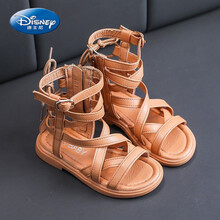 迪士尼【Disney】 夏天穿的女宝宝交叉绑带凉鞋女童罗马鞋子时尚韩版儿童夏季公主高帮平底鞋 浅棕色 27码内长16.5cm