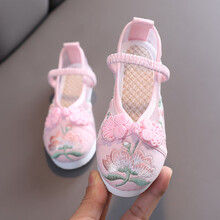 迪士尼旗舰官方小女孩搭配汉服穿的女童凉鞋儿童夏季透气网鞋汉服童鞋古装民族中国风北京布鞋绣花鞋 粉红色 A3099 36码/内长22.3cm