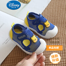迪士尼0-4岁20宝宝透气网鞋婴儿凉鞋包头学步鞋软底夏季幼男女小童鞋小孩子夏天穿的鞋子防滑 YG34蓝色 18码内长13cm