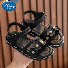 迪士尼轻奢品牌女童凉鞋夏季2021新款1-3-5-9-12岁小女孩公主鞋时尚透气软底沙滩防滑百搭凉鞋 黑色 33码(内长21CM适合9周岁)