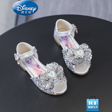 迪士尼(Disney)女童冰雪奇缘新款爱莎公主鞋小女孩软底凉鞋儿童艾莎水晶鞋表演鞋小孩子穿的 爱莎C66爱心银色 30码内长18.6CM