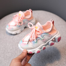 迪士尼同款高端轻奢儿童鞋子夏季春款女童网鞋春夏款女宝小童鞋春秋宝宝透气网面单鞋 桔色 29 内长17.5cm