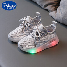 迪士尼旗舰官方店 儿童运动鞋1-5岁3椰子鞋男童网面透气2021春夏女童小童亮灯宝宝鞋 灰色【亮灯透气单鞋】 26码/内长16cm