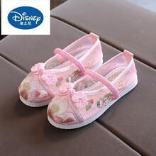 ℘ 迪士尼同款旗舰官方店毕买童装汉服鞋女童绣花鞋中国风老北京儿童手工布鞋民族古装舞蹈鞋网布鞋 粉色 34码21.0cm