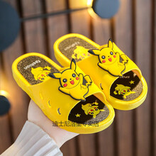 ℂ迪士尼同款【夏季新款】儿童拖鞋夏男室内防滑女童可爱小孩洗澡浴室男童凉拖一体成型旗舰官方专卖 【B38比卡丘】黄色 34-35码(内长约21.5cm)