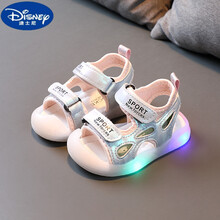 迪士尼品牌特价Disney亮灯宝宝鞋子女0-1-3岁2男童防踢包头凉鞋2021夏季新款小童沙滩鞋 亮灯凉鞋A02粉色【防滑软底】 17码 【鞋内长12.5cm】