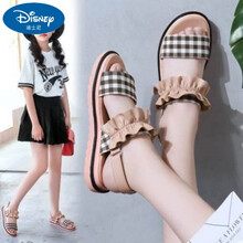 Disney迪士尼品牌凉鞋女童中大童2021新款韩版夏季小学生时尚女孩小公主鞋儿童凉鞋 杏色 37码/鞋内长23.5CM