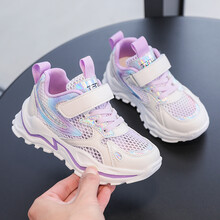 迪士尼(Disney)女童运动鞋2021年夏季新款时尚潮流洋气儿童网鞋透气网面中童单网炫彩童鞋女孩 紫色 26码内长16.5
