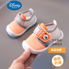 迪士尼0-4岁会响的鞋子夏季镂空叫叫鞋宝宝软底防滑学步鞋男女童透网凉鞋婴儿小孩子夏天穿的鞋子防滑 灰色 2108熊镂空叫叫鞋 内长12cm