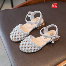 古拉提克ℂ女童带钻凉鞋夏季水钻爱莎公主鞋子洋气5-13岁2021新款女孩水晶鞋珍珠款走秀表演童鞋子 银色 36码/鞋内长22cm