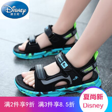 迪士尼儿童男童凉鞋2021夏季新款男中大童鞋防滑软底露趾沙滩鞋男孩 199黑蓝A 38 码内长24.0厘米