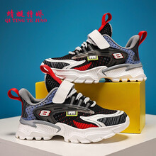 蜻蜓特娇童鞋男机甲黄蜂男2021年新款夏季童鞋儿童网鞋中童大童透气网面飞织运动鞋休闲鞋 黑红【单网】 34码(鞋内长22.0cm)