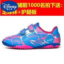 迪士尼儿童足球鞋碎钉夏季夏季网面透气儿童足球鞋男碎钉训练鞋小学生魔术贴球鞋女童运动鞋 166-1桃红【送球袜+护板】 35