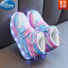 迪士尼旗舰官方店 儿童会发光的鞋男童女童led夜光带灯鞋充电亮灯鞋5七彩闪光运动鞋 116紫色网面 31内长19.5cm