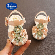 迪士尼(Disney)婴儿凉鞋公主鞋女童夏季软底0-2一岁1幼儿学步鞋包头女孩宝宝凉鞋 202花朵款 粉色 15码(内长11.5cm)