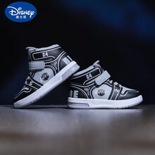 迪士尼(Disney)儿童高帮篮球鞋2021秋冬季新款皮面防水男童运动鞋中大童 灰色 27码/鞋内长约16cm