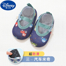 迪士尼品牌适合0-5岁小孩春夏天穿的儿童地板袜婴儿防滑隔凉宝宝春秋室内袜子夏季薄款早教学步鞋袜套 网眼米奇-蓝色汽车 s码 底长13.7cm左右(适合1-...
