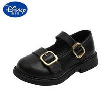 迪士尼旗舰官方店 女童鞋时尚小皮鞋2021春秋新款复古宝宝鞋小童公主鞋软底儿童单鞋 黑色 24码内长15.5cm