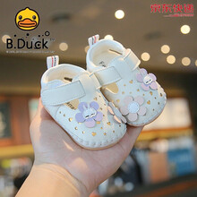 B.DUCK小黄鸭新款夏季女宝宝凉鞋1一岁防滑包头幼童3-6-9个月婴儿学步鞋子软底公主 米色 内长11.5cm