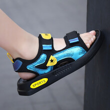 迪士尼【品牌特价】7男童凉鞋2021夏季新款时尚潮5龙童鞋6帅气洋气男孩沙滩鞋8岁小孩戴的 XZ802黑蓝色 34码/内长21.8cm