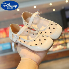 【清凉夏季】迪士尼小公主漂亮小皮鞋2021年春夏季新款女宝宝公主鞋软底单鞋小皮鞋女童镂空透气方头鞋小 米白色 25