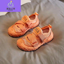 迪士尼同款 同款女童运动包头凉鞋2021夏季新款单网面镂空儿童鞋网鞋男童潮牌鞋子漂亮小孩子 橙色 网鞋 31码/內长19.6CM