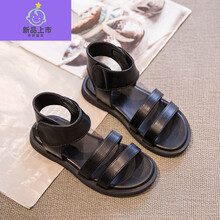 迪士尼同款 女童罗马凉鞋2021夏新款中大童女孩凉鞋儿童韩版休闲沙滩凉鞋软底 黑色 32 内长20cm