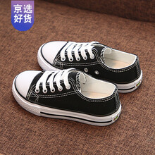 Disney/迪士尼品牌同款儿童帆布鞋中大童平板鞋男童女童绑鞋带白色布鞋学生运动球鞋亲子 T901黑色 35码/内长22.5cm(大童)