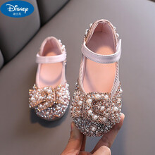 迪士尼甜美洋气小女孩公主演出皮鞋女童鞋儿童软底公主鞋2021春秋款小女孩宝宝单鞋蝴蝶结水钻小皮鞋 粉色(D2018) 25码/鞋内长15cm