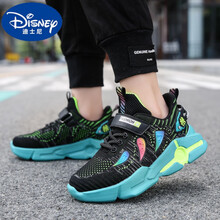 迪士尼/男大童网面篮球鞋春夏季新款男童鞋子网面透气运动儿童篮球鞋男孩中大 200/2黑绿 (四季双网) 28/内长17.8cm