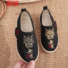 ℑ春秋新款男童绣花鞋儿童汉服鞋子老北京手工布鞋宝宝中国风古风古装表演鞋 无畏-黑色 26码/鞋内长16.1cm