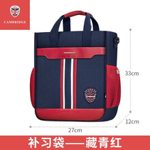 剑桥树小学生补习袋女孩男儿童美术袋手提补课包大容量补习书包 英伦风-藏青红学习好搭档,轻便易携带,可斜跨,可手提:大容量,多隔层,不会乱!
