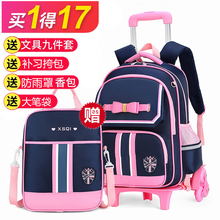 北狐 小学生拉杆书包女生2-3-5-6年级背拉两用男孩儿童双肩包6-12周岁爬楼梯防水背包 蓝配粉(送礼品) 六轮爬梯北狐 小学生拉杆书包女生2-3-5-6年级背拉两用男孩儿童双肩包6-12周岁爬楼梯防水背包 蓝配粉(送礼品) 六轮爬梯