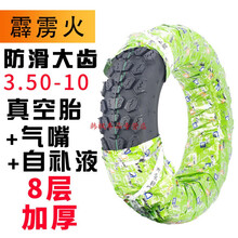 踏板摩托车电动车真空胎300 3.00 3.50 350-10加厚8层轮胎内外胎 大齿霹雳火350-10+气嘴+自补液