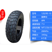 路虎踏板摩托车 130/90-10轮胎祖玛电动车 12寸小猴子M3防滑真空胎 120/90-10菠萝纹(自补液)