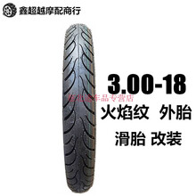 摩托车轮胎3.00-18八层加厚防滑真空钢丝胎轮胎300-18后轮胎 3.00-18火焰纹 外胎