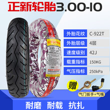 润华年正新轮胎14X3.2/3.00-10电动车真空胎轮胎加厚耐磨防爆胎8层 正新3.00-10真空胎4层922T