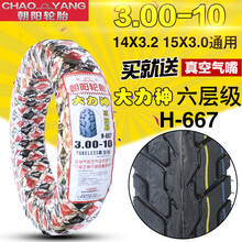 朝阳电动车轮胎3.00-10真空胎15X3.0防滑14*3.2防爆8层摩托车真空 朝阳3.00-10大力神六层H-667花纹