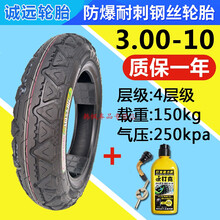 诚远3.00-10钢丝胎142.5电动车轮胎300-10真空胎摩托车防爆外胎 诚远3.00-10四层钢丝胎+补胎液