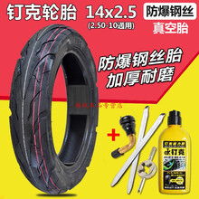 电动车轮胎142.5(64-254)真空胎2.75-10防爆钢丝胎外胎防滑 钉克14x2.5防爆钢丝胎+工具+补胎液